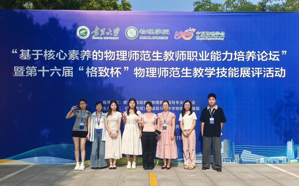 近日,由教育部基础教育物理教学指导专业委员会、《物理教师》编辑部与《中学物理》编辑部共同主办的第十六届“格致杯”全国物理师范生教学技能展评活动在宁夏大学落下帷幕。我校物理与光电技术学院组织3名学科教学(物理)硕士研究生和5名物理学专业本科生参赛并全部获奖。其中,邓积荣同学获一等奖,郑怡萌同学获二等奖,李秀梅、杨惠茜、吴涵宇、李玫、王馨媛、魏家乐6名同学获三等奖。