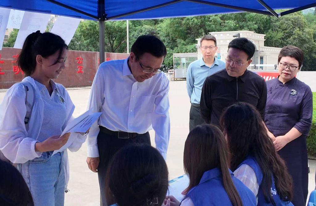在各学院报到点,由学院领导、研究生秘书、辅导员和学生志愿者组成的迎新团队,为新生提供手续办理、政策咨询等全流程服务,让每位新生感受到家一般的温暖。志愿者们活跃在校园各个角落,用热情的引导和贴心的帮助,陪伴新同学开启在宝文理的“研途”新篇章。当天下午,研究生院领导走访新生宿舍,面对面沟通、为同学们解答疑问。