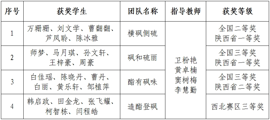 本次竞赛获奖展现了我校学子扎实的专业功底和勇于创新的精神风貌,体现了学校在深化产教融合、创新人才培养模式方面取得的成效。(教务处、化学与材料工程学院 文/卫粉艳 审核/周喜华、冯海涛)
