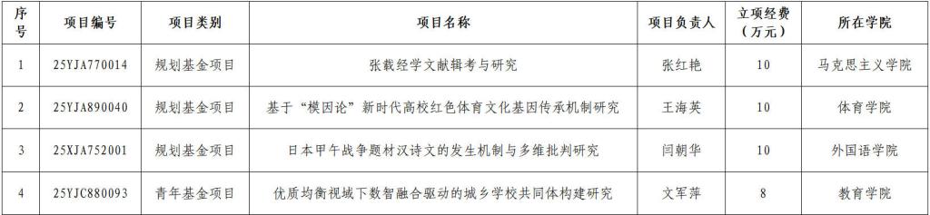 近日,教育部社会科学司公布了2025年度教育部人文社会科学研究一般项目立项名单,我校获批4项,资助经费共38万元。(科研管理处 文/张蕴 审核/胡登卫)
