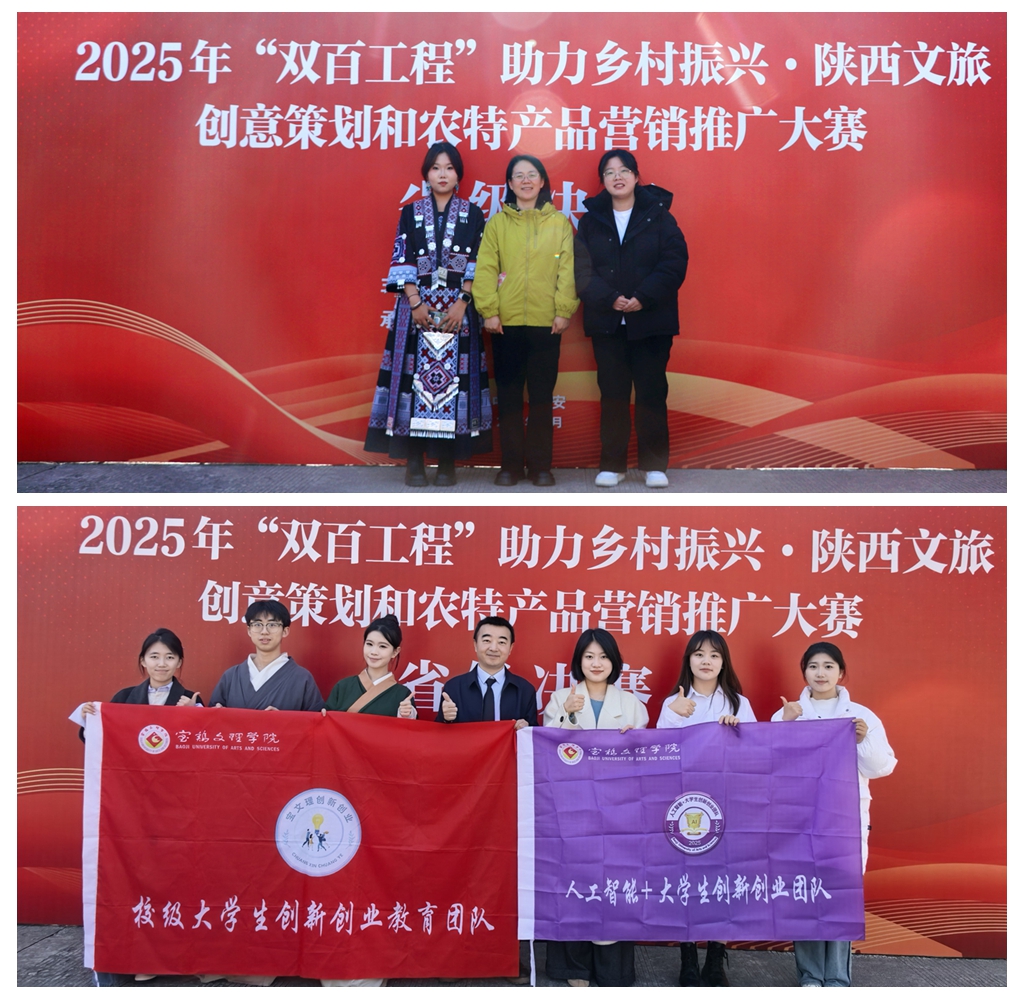近日,中共陕西省委教育工作委员会通报了2025年“双百工程”助力乡村振兴·陕西文旅创意策划和农特产品营销推广大赛结果,我校参赛队伍获省级决赛三等奖1项、“最佳创意奖”1项。