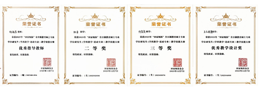 决赛环节涵盖教学设计、课件制作、模拟授课和即席答辩四个核心模块,全面考察选手的教学综合能力。备赛期间,政法与历史学院继续强化指导力度,陈云飞副教授带领参赛学生针对决赛各环节的要求反复磨课,优化教学方案,提升选手的教学表现力与临场应变能力。最终,3名参赛同学获得优异成绩。